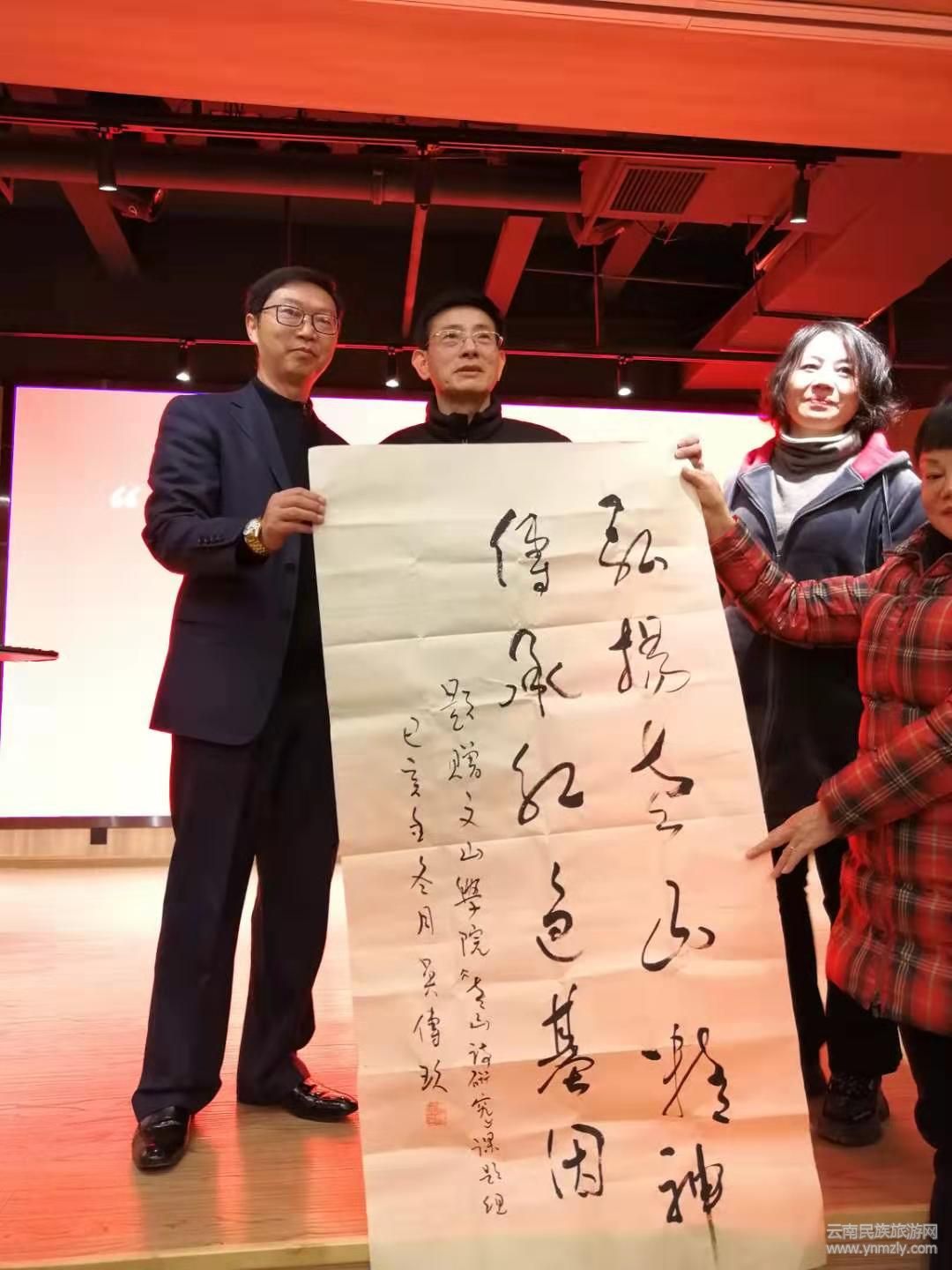 云南海創(chuàng)教育投資有限公司董事長王立詠介紹該公司在老山精神指引下的成就,受到與會者的充分肯定。大家還就如何進一步深入研究老山詩,弘揚老山精神,讓老山詩進軍營,進校園,并提出了好的意見建議。參會部分代表分別向老山詩研討座談會主辦方、承辦方贈送了書法墨寶。