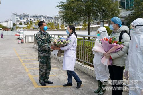 當(dāng)天中午,該名治愈患者自己走出了隔離區(qū),整體精神狀態(tài)良好,醫(yī)護(hù)人員送上鮮花表示祝賀。