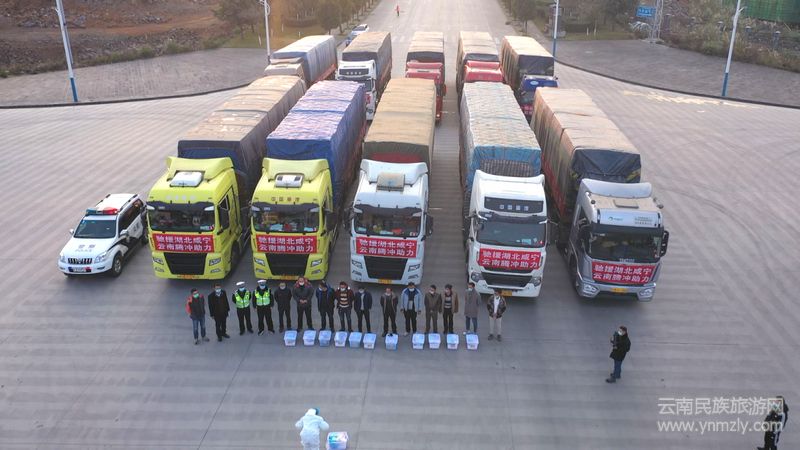 新冠肺炎疫情發(fā)生以來,騰沖市各族人民群眾始終深深牽掛著處于防疫任務(wù)最艱巨的湖北同胞,明確云南省對(duì)口支援湖北省咸寧市后,恰好與騰沖一水相隔的緬甸香蕉基地的香蕉成熟了,騰沖市決定將最甜最新鮮的香蕉送給咸寧的市民和防疫一線的人員。這批物資由騰沖市委市政府捐贈(zèng),共有香蕉256噸13480件,由十位經(jīng)驗(yàn)豐富的駕駛員和來自商務(wù)局、交警大隊(duì)、融媒體中心的保障人員組成運(yùn)輸車隊(duì)。