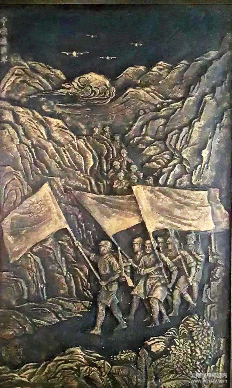 在我的辦公樓里懸掛著四幅愛國(guó)題材的銅雕,內(nèi)容、主題由我自己選定,古代兩幅,一幅是“匈奴未滅,何以家為”的漢代名將霍去病,另一幅是“不教胡馬度陰山”的飛將軍李廣?,F(xiàn)代的兩幅,一幅是中國(guó)人民志愿軍跨過鴨綠江,面向東方的一幅便是《中國(guó)遠(yuǎn)征軍》。那是以一張中國(guó)遠(yuǎn)征軍從印度藍(lán)姆伽基地出征開始大反攻時(shí)的歷史照片作為藍(lán)本的銅雕,浮雕仍請(qǐng)中國(guó)美院徐靜達(dá)老師創(chuàng)作,我曾多次去他創(chuàng)作室及工場(chǎng)探討表現(xiàn)方式,記得當(dāng)初刻畫出征戰(zhàn)士的神情時(shí),徐老師畫了幾張微笑的年輕戰(zhàn)士的面孔,我開始覺得不夠凝重,讓徐老師作了修改,營(yíng)造了“風(fēng)蕭蕭兮易水寒,壯士一去兮不復(fù)返”的肅殺氣氛。待我開車跑上高速,忽然改變主意,覺得當(dāng)年這支大反攻的遠(yuǎn)征軍隊(duì)伍已與第一次入緬的隊(duì)伍不可同日而語(yǔ),兵強(qiáng)馬壯、裝備精良,已有必勝信心,臉上應(yīng)有掃蕩日寇的豪氣,便立即打電話給徐老師讓他仍然改回生龍活虎的笑臉。