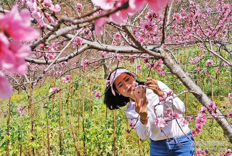 穿一襲白色的衣裙走進桃花深處,看見一朵朵桃花在對著自己微笑?;秀遍g,感覺自己也變成了桃花里的一朵,同樣在微笑著享受春天。