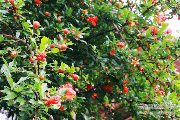 門前無邊青麥,墻頭石榴花開。一株不起眼的石榴樹、一朵不起眼的石榴花,卻紅遍了整個(gè)初夏,且不說秋日里那碩大飽滿的紅石榴讓人垂涎欲滴,今日那火一般的中國(guó)紅照樣令人沉醉。