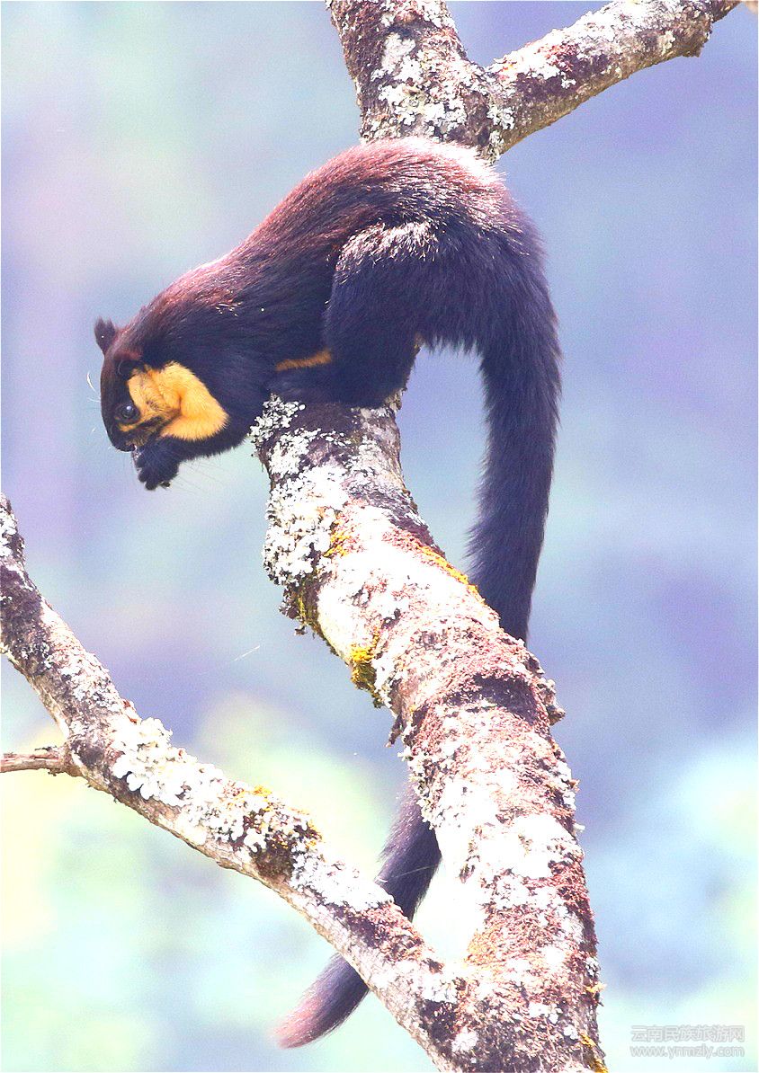 巨松鼠(Ratufa bicolor)又名樹狗、黑貍、藤貍、黑果貍等,是一種大型嚙齒類動(dòng)物。據(jù)百度資料介紹,其成體體重可達(dá)3000克,體長超過40厘米,尾長達(dá)60厘米,它的身高也毫無爭議地成為“松鼠界的巨無霸”。