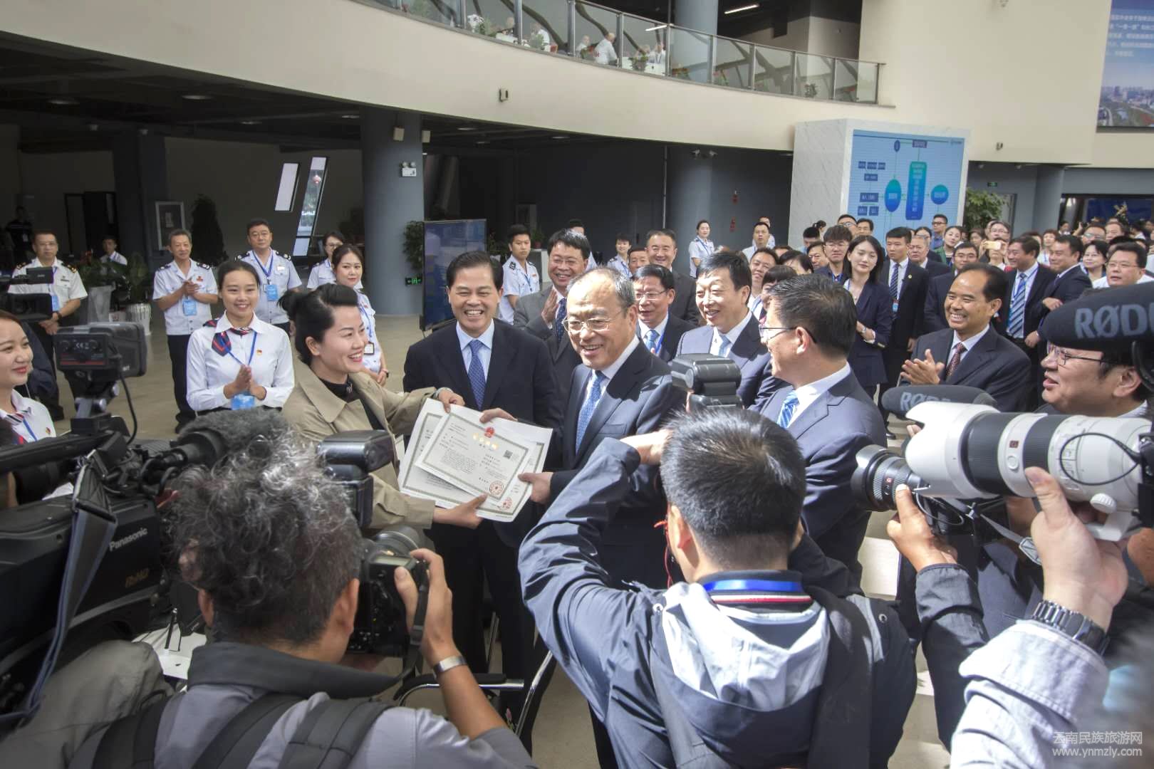 2019年8月30日昆明自貿(mào)區(qū)掛牌當(dāng)天,省委書記陳豪和省長阮成發(fā)為云南云芝凰健康科技有限公司董事長法定代表人王怡璇女士頒發(fā)營業(yè)執(zhí)照