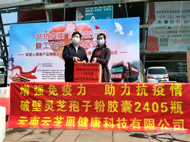 2019年底,突如其來的新冠肺炎疫情席卷神州大地,全國各族人民在黨中央英明領(lǐng)導(dǎo)下用自己的行動奮力投入抗疫阻擊戰(zhàn)。社會各界除做好自身疫情防控外,紛紛向“疫”線愛心捐款、捐各類物資。公司董事長、法定代表人王怡璇女士帶領(lǐng)公司員工親臨云南省委省政府應(yīng)對疫情工作領(lǐng)導(dǎo)小組指揮部組織的共抗疫情 民企在行動 云南省民營企業(yè)家協(xié)會捐贈儀式現(xiàn)場向疫區(qū)獻(xiàn)愛心,捐贈公司研發(fā)生產(chǎn)的“破壁靈芝孢子粉膠囊”,助力抗疫情。
