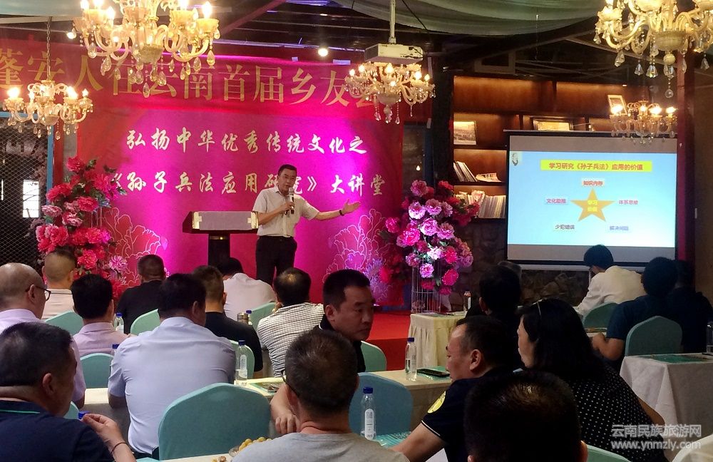 云南民族旅游網(wǎng)訊(記者 吳敏昆)習(xí)近平總書記在十九大報(bào)告中提出要高度堅(jiān)持文化自信,建設(shè)文化強(qiáng)國,沒有社會主義文化繁榮興盛就沒有偉大的中華民族復(fù)興!6月20日,弘揚(yáng)國學(xué)文化振興民族經(jīng)濟(jì)為主題的 《孫子兵法應(yīng)用研究》大講堂暨蓬安人在云南首屆鄉(xiāng)友會在昆明軒宸前衛(wèi)壹號酒樓舉行?;顒佑稍颇先嫖幕瘒阑饡笇?dǎo),云南省民間投融資行業(yè)協(xié)會、云南省國學(xué)文化傳承工作委員會、云南嘉樂控股集團(tuán)有限公司、云南博別茶葉有限公司和云南八得禾商貿(mào)有限公司聯(lián)合主辦,云南業(yè)道企業(yè)管理咨詢有限公司承辦。