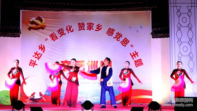干群同臺齊獻藝,歡歌起舞贊家鄉(xiāng)。本次文藝巡演緊扣“看變化、贊家鄉(xiāng)、感黨恩”主題,由中共平達鄉(xiāng)黨委、平達鄉(xiāng)人民政府主辦。誠邀龍陵縣民族文化工作隊、龍陵縣文化館鼎力相助,組織政府機關單位干部職工、中小學校師生、掛包單位、村(社區(qū))干部和廣大群眾共計120余人同臺表演。在一場場精彩的演出中,演員們熱情高漲,觀眾座無虛席,通過喜聞樂見的本土文化,結合本地民俗風情,用身邊鮮活的故事,進一步加深貧困群眾對脫貧攻堅的認可,肯定精準扶貧給家鄉(xiāng)帶來的變化,發(fā)自內心的贊家鄉(xiāng)、感恩黨。其中表演唱《扶貧政策宣傳歌》、舞蹈《茶鄉(xiāng)情》、歌舞《美好新時代》、小品《懶漢脫貧》等節(jié)目,淋漓盡致地展現(xiàn)了脫貧攻堅帶來的惠民政策,在精準扶貧路上干群心連心,同心協(xié)力打贏脫貧攻堅戰(zhàn),共同致富奔小康,深情表達了家鄉(xiāng)群眾自力更生創(chuàng)造美好生活的精神風貌。