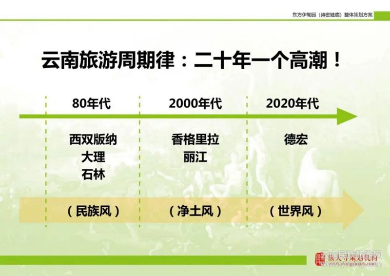 熊大尋旅游規(guī)劃公司找到香格里拉的標(biāo)志是卡瓦格博峰,《消失的地平線》記載金字塔式叫卡拉卡爾的雪山就是卡瓦格博;“香格里拉”藏語是“心中的日月”,熊大尋找到1992年卡瓦格博“日月同輝”圣照,并且在中甸發(fā)現(xiàn)寺廟建筑頂上和法師帽子上的“日月同輝”,從而證明香格里拉在中甸!同時(shí),熊大尋旅游規(guī)劃公司“風(fēng)花雪月,自在大理”的策劃第二次炒熱了大理。第三個(gè)階段是2020年,熊大尋旅游規(guī)劃公司正在策劃“伊甸園在云南”,找到了二十八大證據(jù)證明伊甸園在云南。即將掀起第三個(gè)高峰。繼香格里拉之后平庸了快二十年,云南期待顛覆性的旅游新亮點(diǎn)!