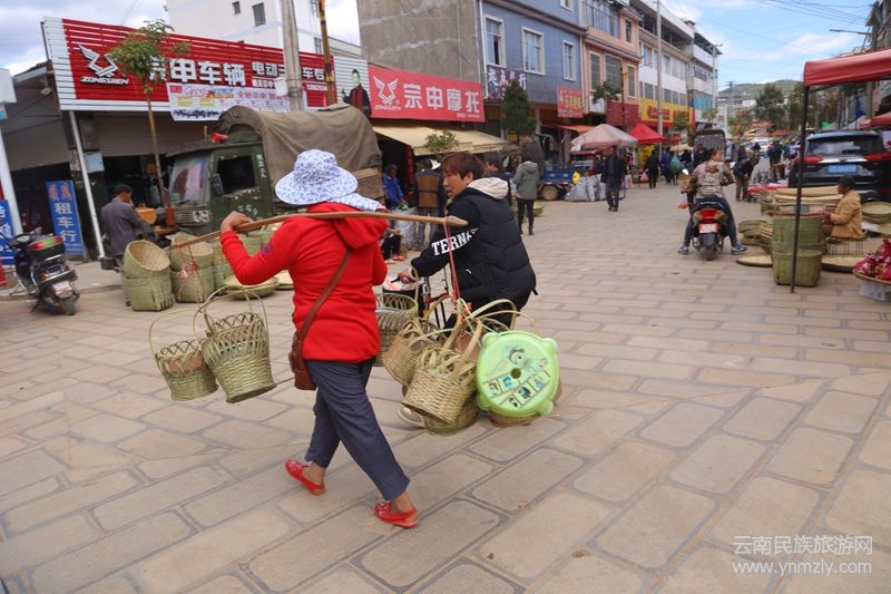 云南民族旅游網(wǎng)訊(段曉波 張?zhí)炖恚?,充滿了濃郁的鄉(xiāng)土氣息,也是街道買賣的一道風(fēng)景。街天大早,老篾匠們就叮兒當(dāng)兒把各種篾編挑到街里;有竹籃,有簸箕,有各種生產(chǎn)中適用的小農(nóng)具,沿著街口擺起來,一件疊一件,壘砌得如戰(zhàn)壕一般,開始了一天的生意。老篾匠是姚關(guān)這條街做買賣中最老的人,三五兩個(gè),蹲在篾編后面,看著魚貫而入的街人,不慌不忙,支起了“懶鉤”,五天一街,風(fēng)雨不改。