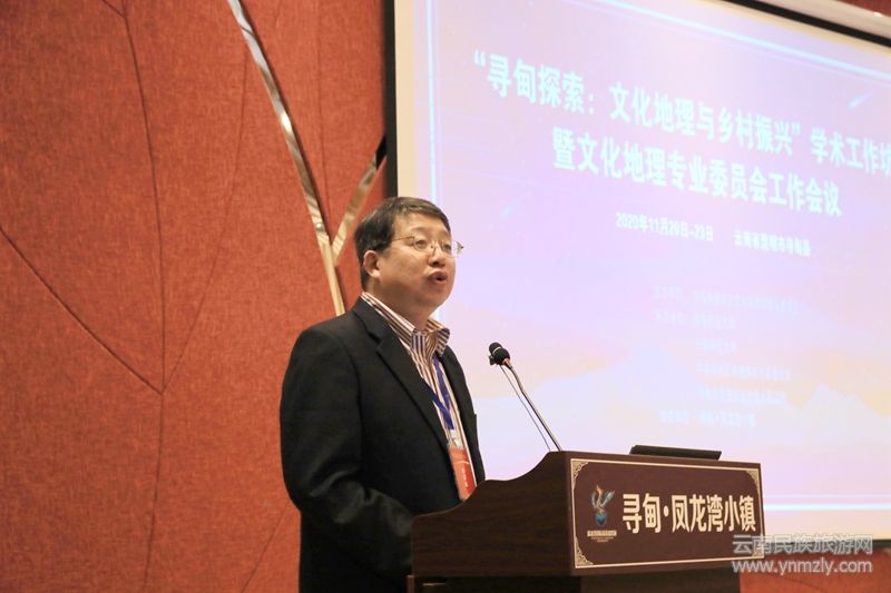 隨后由中國地理學(xué)會副理事長薛德升教授致辭,他表示,中國文化地理學(xué)專業(yè)委員會于2014年4月正式成立,是中國地理學(xué)會重要的專業(yè)委員會之一,是面向文化地理研究領(lǐng)域的全國性、公益性、學(xué)術(shù)性的社會團(tuán)體,是中國發(fā)展文化地理科學(xué)事業(yè)的重要社會力量,在我國文化地理學(xué)的理論和實(shí)踐領(lǐng)域具有核心引領(lǐng)作用。作為一門年輕但又充滿活力的學(xué)科分支,相信對尋甸探索鄉(xiāng)村振興之路具有重要的指導(dǎo)意義。