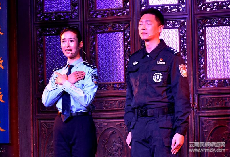 云南民族旅游網(wǎng)訊(記者尹達天)12月4日晚,昆明市公安局組織開展2020年“昆明警方·警察故事”走進馬家大院——向人民報告第三場主題宣傳活動。云南最美基層民警、“百姓最喜愛的人民警察”、轉(zhuǎn)業(yè)公安的抗美援朝老兵、昆明公安扶貧工作點滴……舞臺燈光調(diào)暗,音樂響起,民警輔警們將昆明警察故事以小品、歌舞等形式娓娓道來。
