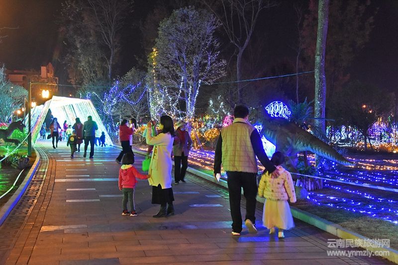 燈,就與茶韻公園的燈光秀浪漫相約。從冬至前夜開始的主題燈光秀,這段時(shí)間一直在點(diǎn)亮著小城的漫長冬夜。大量節(jié)能的霓虹燈組,以寫意的手法構(gòu)造出的海浪、茶葉等造型的“燈海”,與城市的底色連成一片。走進(jìn)“燈海”,聆聽著“就想來昌寧、還想來昌寧……”的歌聲,輕快走過“茶和天下、春暖花開、時(shí)光隧道、海底世界”四個(gè)主題,在茶元素相關(guān)造型、動(dòng)物卡通造型的景觀里,享受一場視覺、聽覺、觸覺的盛宴。
