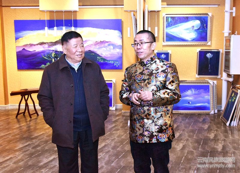 云南省委原副書記、中國文聯(lián)副主席丹增老領(lǐng)導(dǎo)在丁昌勝美術(shù)館參觀指導(dǎo)