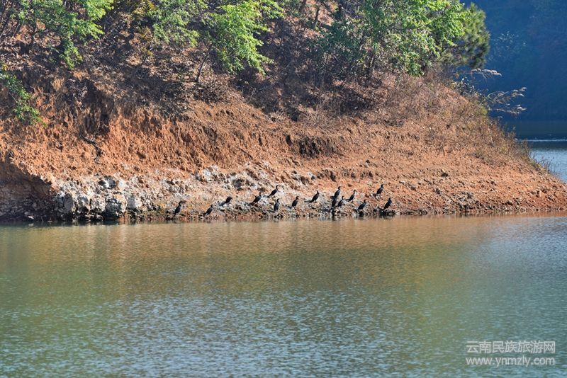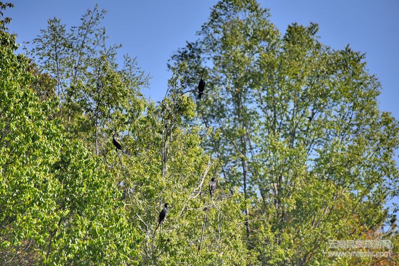 翻過一個小山梁,湖面在一個較狹窄的地方形成了一個水洼,水鳥們又找到了一個安全的地方。“先頭部隊”在水面瀟灑嬉戲,“后續(xù)部隊”則有序準(zhǔn)備降落,幾只鸕鶿甚至落在了樹上,靜靜地看著水面上來來往往。