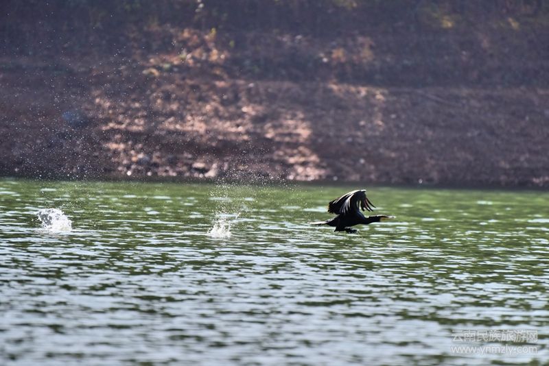 水庫管理員說,“水老鴰”是到這里度冬最早的水鳥,連續(xù)十多年每年都來,數(shù)量大約有百來只。鸕鶿是捕魚能手,它們到這里,不僅為了身上的有暖,還為了腹中有糧。起飛時不會像野鴨那般突然,而如飛機一般在“跑道滑行”一段后才慢慢升空,那動作如傳說中的輕功水上漂,瀟灑地跑過,留下水花一串串。