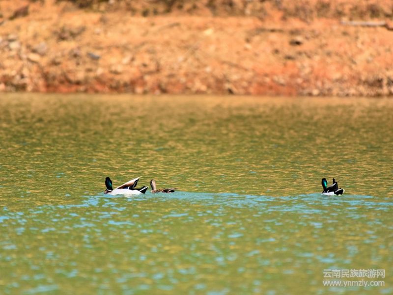 轉(zhuǎn)移鏡頭向湖面看,遠處灑滿陽光的波光里,還有一些“小黑點”,原來是許多野鴨,正在那里悠閑地嬉戲,享受著愜意、安逸、溫暖。