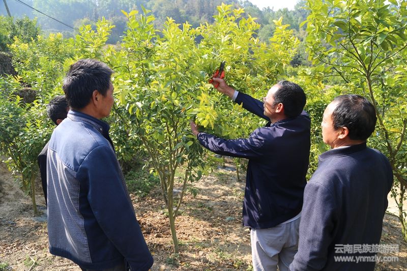 云南民族旅游網(wǎng)訊(通訊員李長明 楊治文)初春時節(jié),走進(jìn)風(fēng)光迷人的龍江畔,隨處散發(fā)著勃勃的生機(jī)。在龍陵縣龍山鎮(zhèn)橫山村沃野連片的砂糖桔種植基地,金黃的橘子笑盈盈的掛滿枝頭,公司負(fù)責(zé)人許國增正耐心細(xì)致的給工人介紹如何修剪果樹。