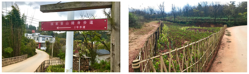 穿過歌樂子村,途徑歌樂子的山地農(nóng)田、1號(hào)觀景亭抵達(dá)漢沖村,該路段全程為鄉(xiāng)村山谷土路,路旁野果眾多。登至觀景亭眼底是郁郁蔥蔥的森林,和錯(cuò)落有致的山間農(nóng)田,豐收時(shí)節(jié)金黃色的麥浪隨山勢(shì)起伏。