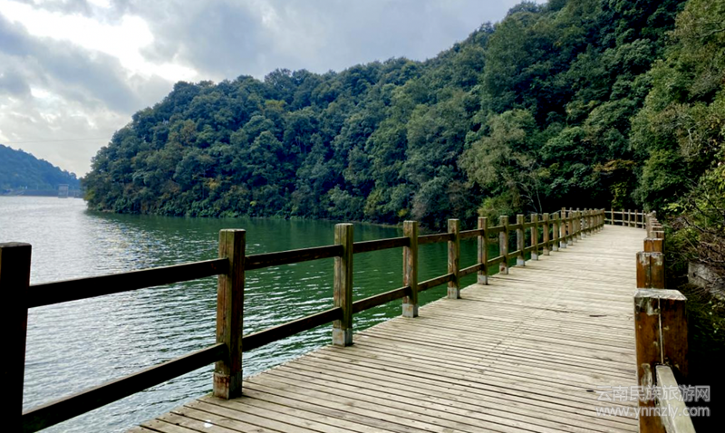從野鴨湖停車場(chǎng)出發(fā),進(jìn)入盤龍區(qū)國(guó)家登山健身步道1號(hào)線環(huán)湖北岸路段,途經(jīng)野鴨湖灣、吊橋、湖心島、湖畔果園、野鴨湖入水口濕地、歌樂子村口,該路段前段穿越林間落葉小道,山谷風(fēng)光,谷中除生長(zhǎng)著高大的松樹,櫟樹,大量野生可使用楊梅和其他長(zhǎng)綠灌木外還生長(zhǎng)著數(shù)種野生蘭花,漫步谷中寧靜幽深,空氣濕潤(rùn)清新,后段傍山環(huán)湖棧道,一路環(huán)湖而行,群山環(huán)抱湖水清澈見底,炎炎夏日一陣清風(fēng)拂面而過,清涼的水汽迎面而來。