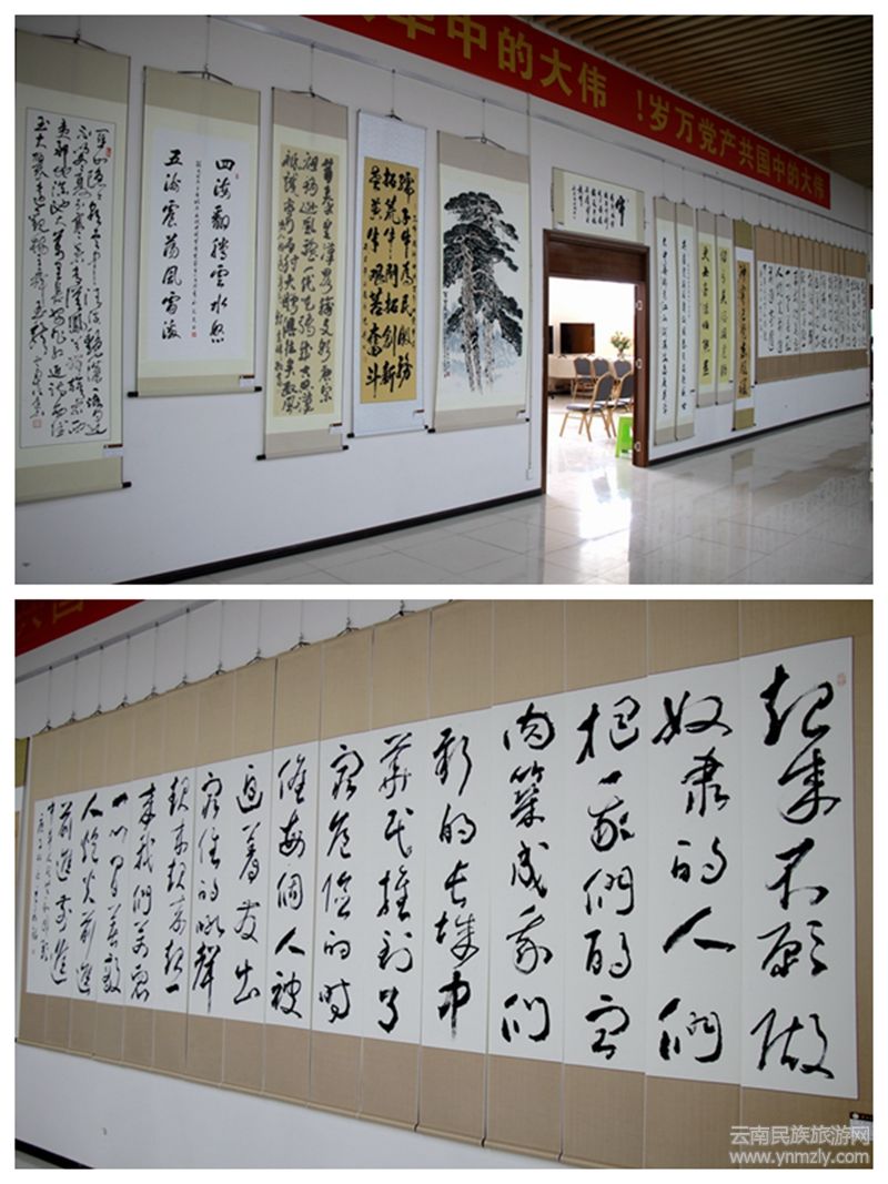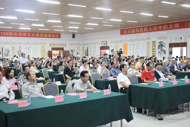 “百年歷史波瀾壯闊,百年初心歷久彌堅。”這次書畫藝術展演活動精心策劃組織實施,在展演大廳醒目地懸掛著:“偉大的中國共產(chǎn)黨萬歲!”“偉大的中國人民萬歲!”“偉大的中華人民共和國萬歲!”等巨幅標語,使整個展演大廳洋溢著節(jié)日的喜慶氛圍。映入人們眼簾的書畫藝術展覽涵蓋了黨的百年奮斗征程,包括了云南各個歷史時期老中青少書畫藝術家的精品力作??梢哉f,是云南文化、教育、書畫藝術界專家教授學者,企業(yè)界和社會各界書畫藝術家、書畫藝術愛好者書畫作品的一次大集中、大檢閱、大展示,具有規(guī)模大、規(guī)格高、豐富性、代表性、獨特性較強的特點。