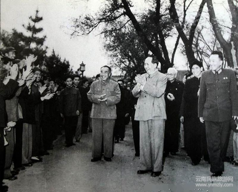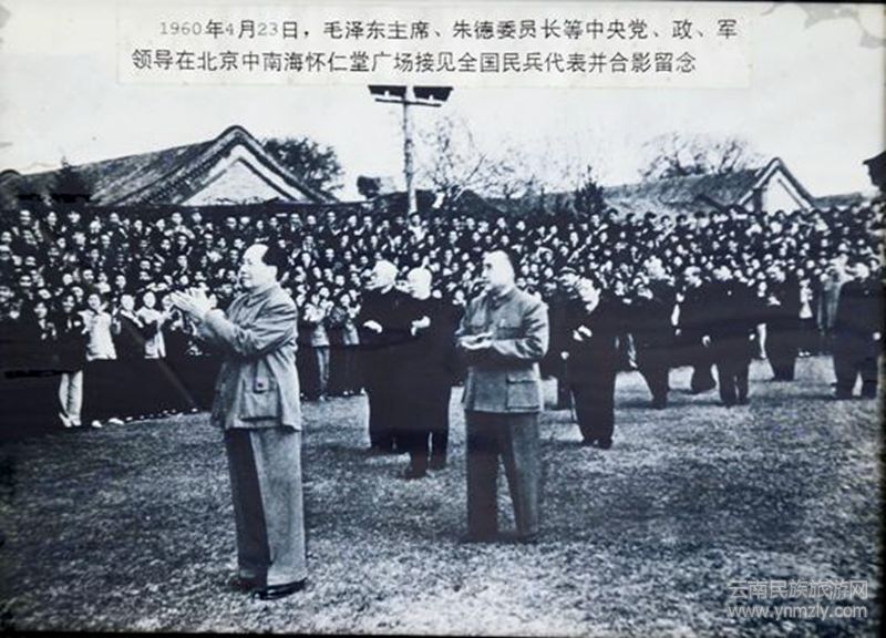 1960年4月30日,毛澤東主席、朱德委員長(zhǎng)等中央黨、政、軍領(lǐng)導(dǎo)在北京中南海懷仁堂接見全國(guó)民兵代表并合影留念