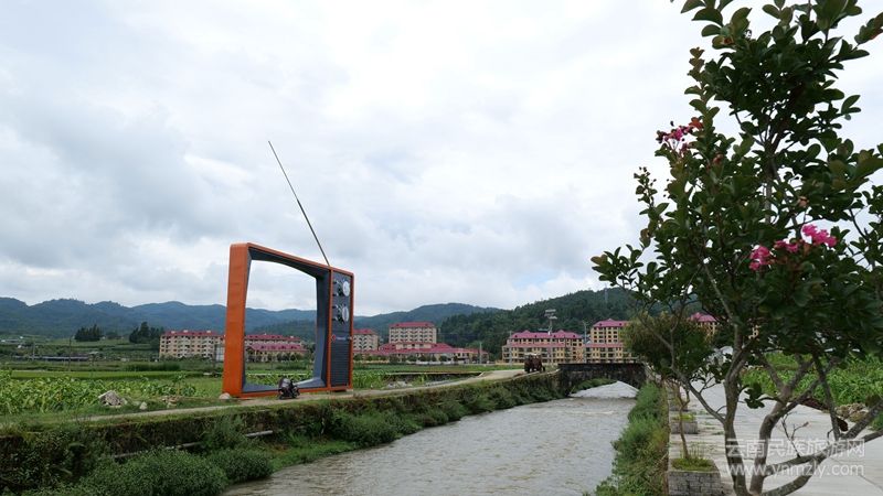 鎮(zhèn)北社區(qū)玉帶河岸“山茶牌大電視