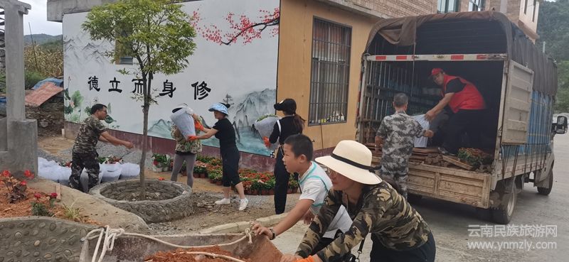 堅(jiān)定落實(shí)“千里綠道、萬里花帶”,因地制宜,就地取材,廣南文旅出動300余人次與群眾上山挖樹1300株、下河取鵝卵石3萬余斤,植綠1600株400余平方米。用簸箕彩繪二十四節(jié)氣扇面,打造“農(nóng)耕”文化墻面;用農(nóng)具鑲嵌墻中,打造“農(nóng)耕”文化長廊;用魚頭、樹干等造型做浮雕排水口和排水管道;用現(xiàn)代工藝做樹藤形狀的村內(nèi)欄桿;用竹子編制菜園圍欄;用樹木鋸成橫切面,制作文化景觀。4個(gè)村莊共打造壯家水車、村中花園、復(fù)古磨坊、“家文化”陳列園等公共微景觀14處。綠化的樹、美化的草、亮化的花,一步一景、一村一特色。9月4日,4個(gè)村莊一次性通過廣南縣綠美村莊示范村建設(shè)考評工作組考評,一致達(dá)標(biāo)通過,現(xiàn)場頒發(fā)“達(dá)標(biāo)”牌匾,并給予獎(jiǎng)金激勵(lì)。