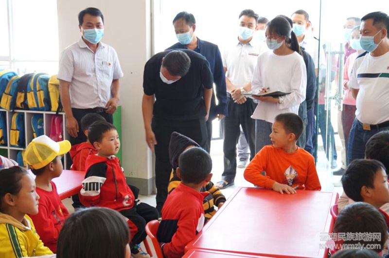巧家縣副縣長(zhǎng)卓永東(右)一行蒞臨金沙幼兒園檢查指導(dǎo)工作,尹嬌嬌總園長(zhǎng)(左)陪同