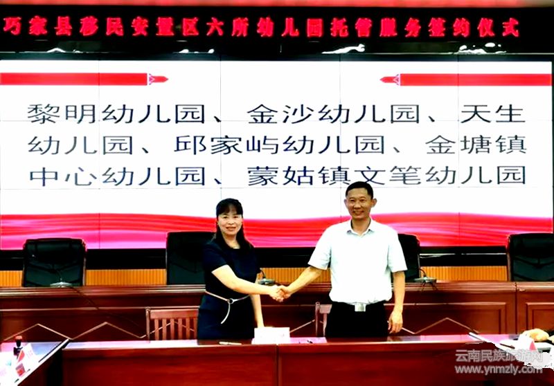 6所安置區(qū)幼兒園委托管理簽約儀式(右為巧家縣教育體育局局長(zhǎng)張勇同志)