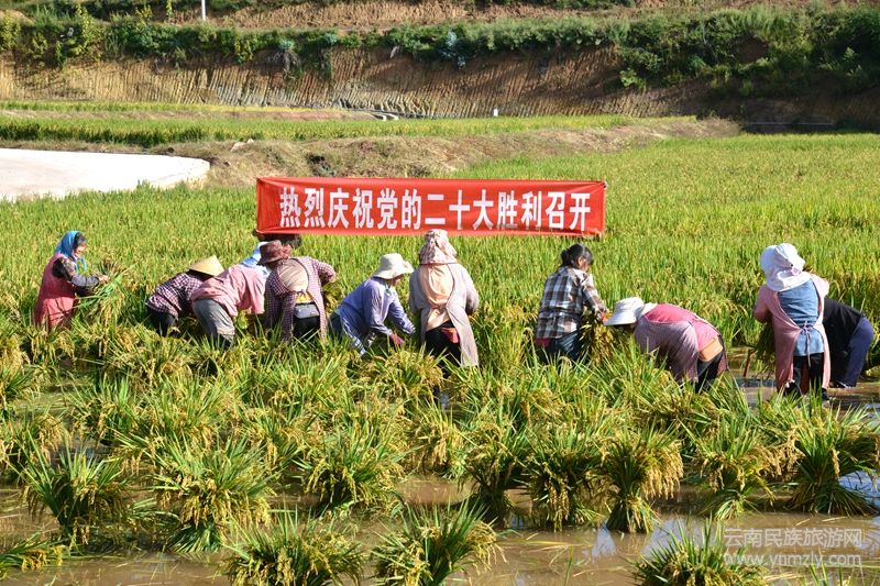 本網(wǎng)訊(通訊員楊祟云)近日來,筆者走進昆明晉寧區(qū)晉城街道化樂鹽井村,一片金黃稻谷,搖曳生姿,點亮了深秋田間,成為秋風(fēng)中的一道絕美風(fēng)景。