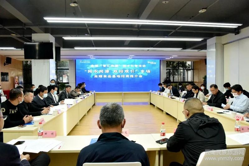 參觀結(jié)束后,雙方舉行“同水同源·雙招雙引”專場暨高端食品基地招商推介會。會議由曲靖市人民政府副市長吳靜主持,她介紹了雙方參會人員及會議議程。
