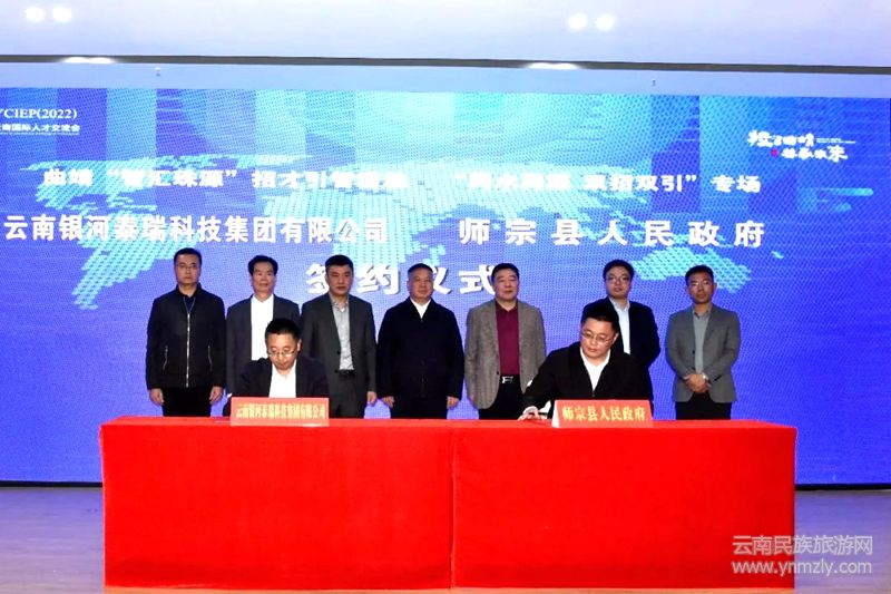 師宗縣曲道凱縣長與云南銀河泰瑞集團田愷副總裁簽訂《師宗縣人民政府 云南銀河泰瑞科技集團投資協(xié)議》。