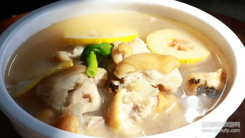 酸味是云南飲食文化中不可或缺的重要元素,因此云南人對酸木瓜的情有獨鐘也體現(xiàn)在飲食中,酸木瓜豬腳、酸木瓜煮雞、酸木瓜炒牛肉、酸木瓜拌蘿卜等等,都是平達人家庭飯桌上常吃的菜品。相比果肉較硬的酸木瓜品種,易削皮、果肉軟、香氣濃的白花木瓜更受人們的喜愛。