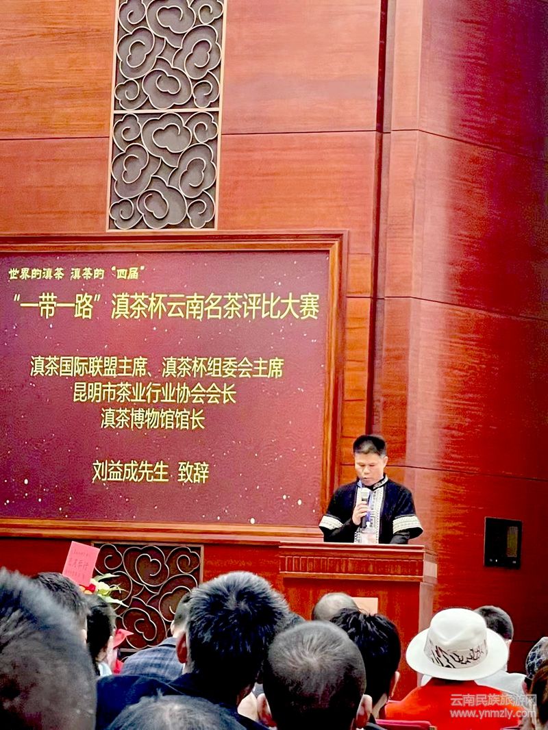 滇茶國際聯(lián)盟主席、滇茶杯組織委員會主任、昆明市茶業(yè)行業(yè)協(xié)會會長劉益成在頒獎盛典上致辭