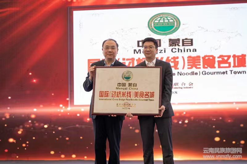 世界中餐業(yè)聯(lián)合會(huì)會(huì)長(zhǎng)邢穎向蒙自市委副書記、市人民政府市長(zhǎng)張波進(jìn)行“國(guó)際(過(guò)橋米線)美食名城”授牌。國(guó)際(過(guò)橋米線)美食名城LOGO、書籍《金湯銀線——中國(guó)非物質(zhì)文化遺產(chǎn)蒙自過(guò)橋米線》、蒙自市過(guò)橋米線產(chǎn)業(yè)服務(wù)平臺(tái)同期發(fā)布、上線。