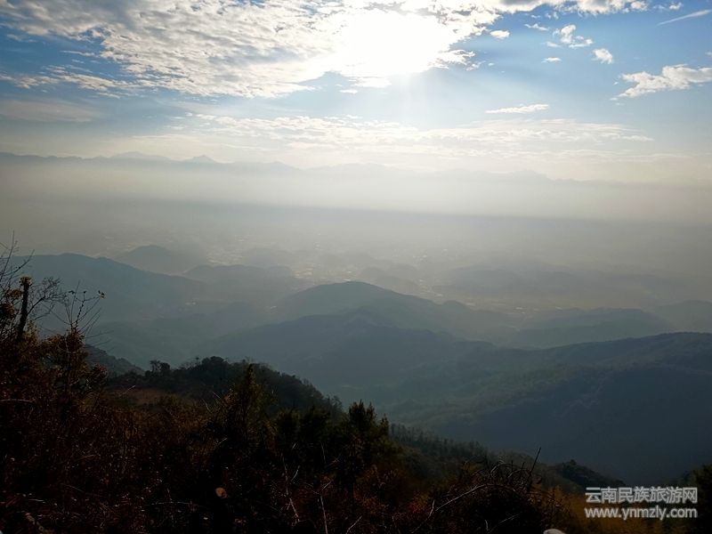 花臺山東、西兩面俯瞰界頭、固東壩,東、西、南三面環(huán)繞著濫觴于固東、界頭、曲石的龍川江支流,東、西、南、北四面環(huán)山。其北,七姊妹山比肩繼踵,其西,大地山依江而立,其南,大石門山、五峰巖山、筆架山等千山竟秀、圓潤飽滿,皆如八字散開,紛至沓來,眾星拱月般環(huán)護花臺山,形成“南山拱衛(wèi)”勝景。