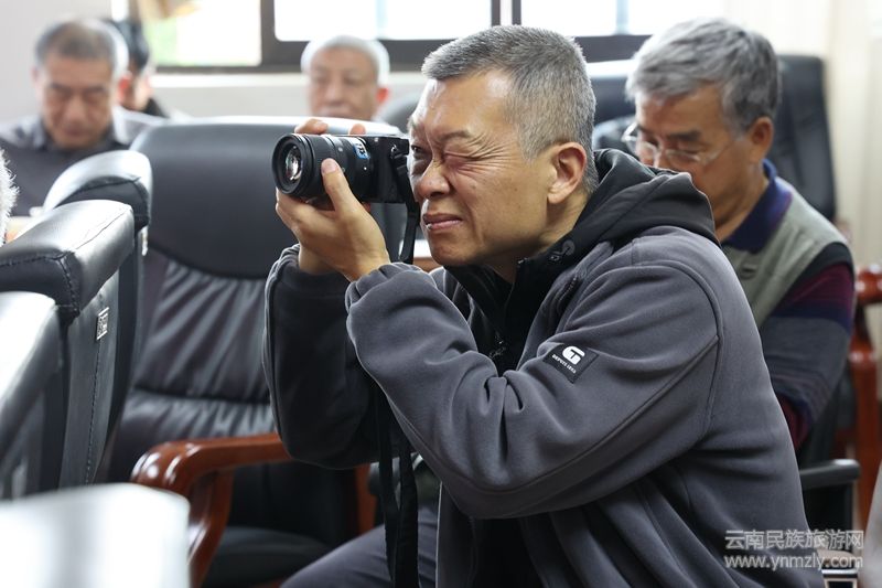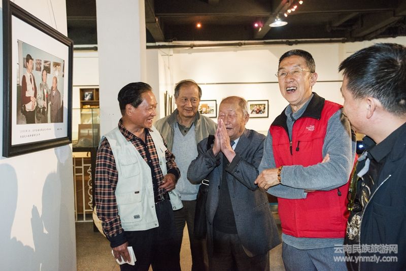 2015年楊老(中)在《呂厚民與云南攝影追思會(huì)》上看到20年前自己與呂厚民以及杜志遠(yuǎn)在一起的照片,甚為激動(dòng)。圖中人物為:左一 原云南省攝影家協(xié)會(huì)主席何亮光,左后二 原昆明攝影家協(xié)會(huì)主席、現(xiàn)昆明攝影家協(xié)會(huì)名譽(yù)主席馬克斌,右二 原云南省攝影家協(xié)會(huì)主席杜志遠(yuǎn) 朱運(yùn)寬攝影