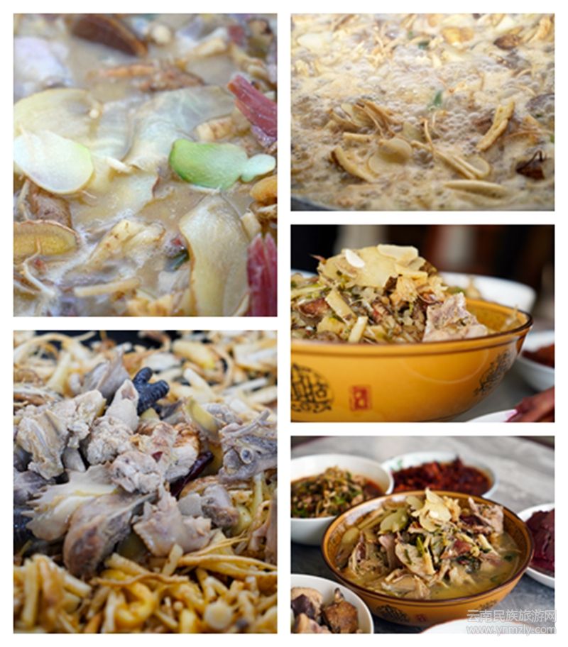 制作藥膳,要提前將打苦菜根、黃精、當(dāng)歸、黨參、茴香根、馬蹄香、細紅巴拉、羊膻草、西洋參等藥材洗凈后備用。除了新鮮的藥材以外,還有兩份至關(guān)重要的食材,土雞、臘肉。把新鮮的藥材,炒制微干,加水,再把提前炒好的雞肉和切好的臘肉放入鍋中,大火燉煮,經(jīng)過高溫烹飪,藥膳已經(jīng)發(fā)生了不可思議的變化。馥郁的藥味混著肉香,清濃相宜,回味綿長,雖為藥材,卻沒有藥材特有的苦味,食之可以滋補健體,潤腸通便,排毒養(yǎng)顏,而且湯鮮味美,是卡斯獨有的一道藥膳美味。