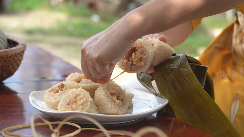 本網(wǎng)訊:在云南省保山市昌寧縣柯街鎮(zhèn)華僑社區(qū),居住著1059戶(hù)3417名歸僑僑眷,這里還保留著一些越南的習(xí)俗。在眾多僑味美食中,最具特色的就是華僑大粽子,每年春節(jié)和端午節(jié),歸僑僑眷都要制作大粽子,寓意幸福長(zhǎng)久。