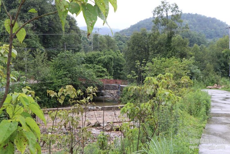 從土瓜山經(jīng)燒灰壩至埽地的道路,幾十年前仍為土路,現(xiàn)已開通水泥路,由南向北,依次經(jīng)過燒灰壩、牛滾塘(其東菌子山)、響水河、淡酒溝,直至阿幸廠(埽地)。而在三百多年前,徐霞客從王店出發(fā),道路卻比較曲折,他從王店“西下行田間,半里抵江岸,溯江北行,有木橋跨江而西,度之”,這座橋梁就在今燒灰壩與核桃園之間的石拱橋一帶。