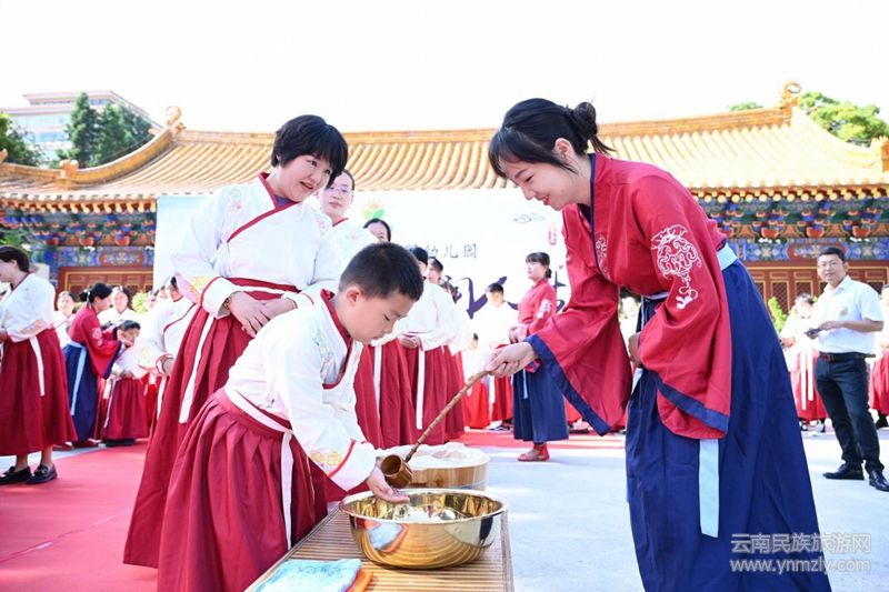本網(wǎng)訊(尹紹平 唐雪淳)2023年7月15日,癸卯年五月二十八,癸卯歲己未月甲戌日,昆明市盤龍區(qū)佳園幼兒園在昆明文廟為2023屆大班的孩子們舉辦了集體畢業(yè)拜師開筆典禮。