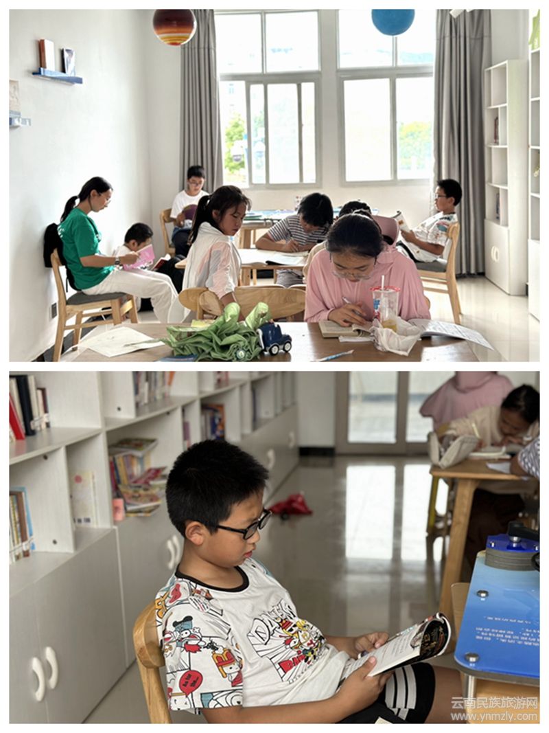 利用農(nóng)家書屋、社區(qū)圖書室等資源,通過志愿者領讀、作講解,孩子們跟讀、談感悟的方式,讓孩子在閱讀里暢游世界,探索宇宙,享受閱讀帶來的樂趣,讓學生在暑假中“充電”不停,學習不止。