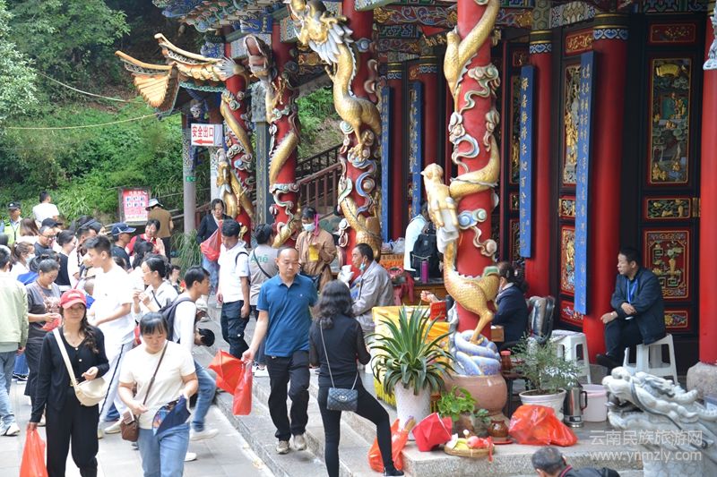 晉寧盤龍寺云南三大佛教圣地之一,香火之旺,每年農(nóng)歷八月初一趕盛會(huì),引來八方游客,熱鬧非凡,花燈小調(diào)滿山唱,唱了山歌唱情歌,葡萄美酒家家釀,盤龍祖師佑保眾生,歌王唱:“看破紅塵不做官,唱個(gè)調(diào)子多喜歡!今日找著開心妹,炒盤茄子當(dāng)豬肝”