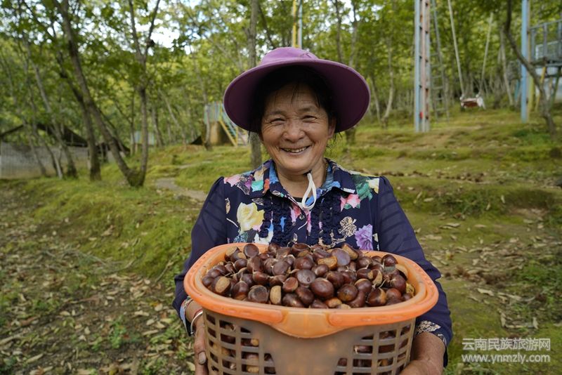 板栗產(chǎn)業(yè)不僅鼓起了群眾的“錢袋子”,還帶動(dòng)鄉(xiāng)村旅游,促進(jìn)了農(nóng)旅融合發(fā)展。在觀音山栗園農(nóng)莊,200多畝連片的板栗林郁郁蔥蔥,枝頭上一顆顆栗果撐破栗蓬,露出“笑臉”,工人們有的在敲打板栗樹上的果實(shí),有的穿梭在林間拾撿板栗。每年板栗成熟季節(jié),栗園農(nóng)莊的生意就很火爆,很多市民都會(huì)帶著家人、朋友到這里游玩,吃一頓農(nóng)家飯,體驗(yàn)一把拾撿板栗的樂趣,感受豐收的喜悅。