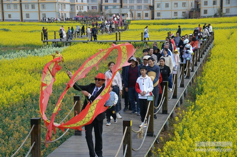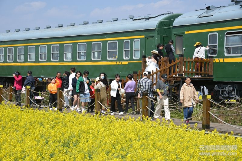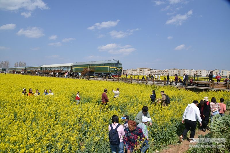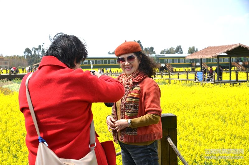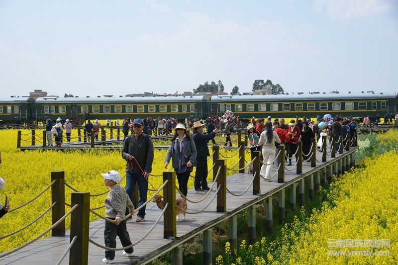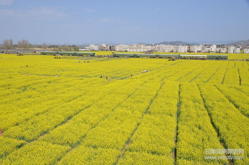 本網(wǎng)訊(通訊員 楊崇云攝影報道)春節(jié)期間、昆明晉寧區(qū)沙堤村600畝油菜花相綻放、微風(fēng)吹過、油菜花海泛起黃色波浪與綠色小火車、滇池、村莊相映成趣、勾成一副美麗春色、吸引眾多的四面人方游客前來賞花拍照游玩。