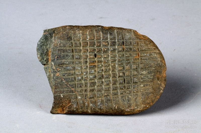 陶器的藝術(shù)性不僅體現(xiàn)在器型的豐富多樣,更主要是體現(xiàn)在紋飾上。陶器的紋飾附著于器物表面,對陶器形成裝飾藝術(shù)效果,進(jìn)而展現(xiàn)人的審美意識和審美情趣。紋飾的發(fā)展經(jīng)歷了由抽象到具象的過程。這是認(rèn)知的發(fā)展,也是技術(shù)的發(fā)展,更是審美意識的發(fā)展。保山出土新石器時代的陶器基本上都屬于抽象的幾何紋飾,有劃紋、印紋、戳點紋、繩紋、籃紋、弦紋、人字紋、乳釘紋、直線紋、斜線紋、圓圈紋、點線紋、篾笆紋、蓆紋等,以刻劃、剔刺、按捺、模印、堆貼、拍印等方式單獨或組合飾于器物表面。龍陵大花石等遺址發(fā)現(xiàn)的石印模是模印技術(shù)的重要器件。制陶人先在石塊上刻出花紋,然后用拍打的方法拍于半潮濕狀態(tài)的陶器成型后,經(jīng)窯內(nèi)燒制后就留下了美麗的花紋。石印模是批量生產(chǎn)陶器花紋的工具之一,或許也存在木制或陶制印模。陶器表面施以紋飾,并不因此改變陶器的造型、容積,也不會影響陶器的燒制工藝。因此,在陶器上拍印花紋只有一個目的——美觀。換言之,陶器的裝飾花紋是古人類“純藝術(shù)”的作品,反映的是氏族先民的審美標(biāo)準(zhǔn)。
