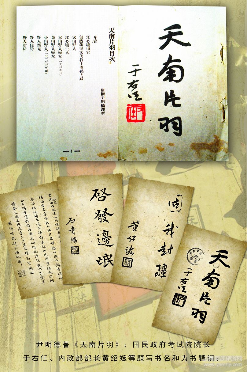 尹明德著《天南片羽》:國(guó)民政府考試院院長(zhǎng)于右任`內(nèi)政部部長(zhǎng)黃紹竤等題寫書名和為書題詞