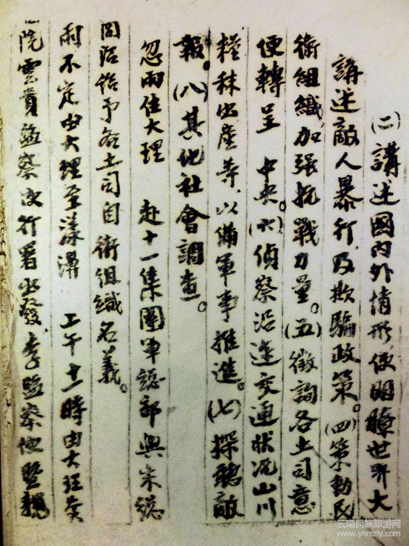 針對(duì)南甸土司署槍彈缺乏、經(jīng)費(fèi)拮據(jù)的現(xiàn)狀,尹明德說(shuō):“槍彈缺乏,如能由中央補(bǔ)助一部分,自然最好,司官的武裝力量也會(huì)因此而強(qiáng)大。然而,當(dāng)前時(shí)局維艱,全國(guó)抗戰(zhàn)處于最關(guān)鍵時(shí)刻,各方壓力都很大,各地抗戰(zhàn)都需要大量的戰(zhàn)略物資。南甸司署組訓(xùn)民眾,補(bǔ)助抗戰(zhàn),不必一定有槍彈,方能效力,如運(yùn)輸救護(hù)、傳遞情報(bào)、擔(dān)任向?qū)?,籌集糧秣等,皆需民眾幫助。”