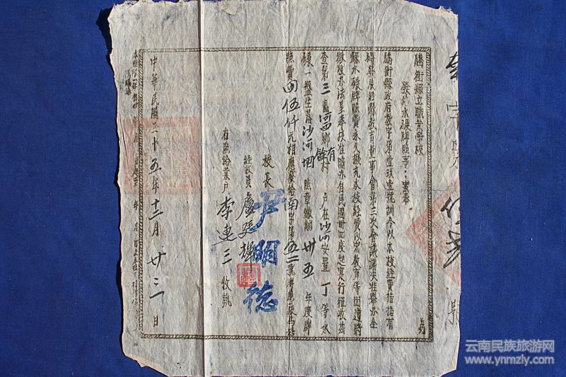 民國(guó)35年12月騰沖職業(yè)學(xué)校校長(zhǎng)尹明德發(fā)給的水碾牌照 (賈志偉收藏)