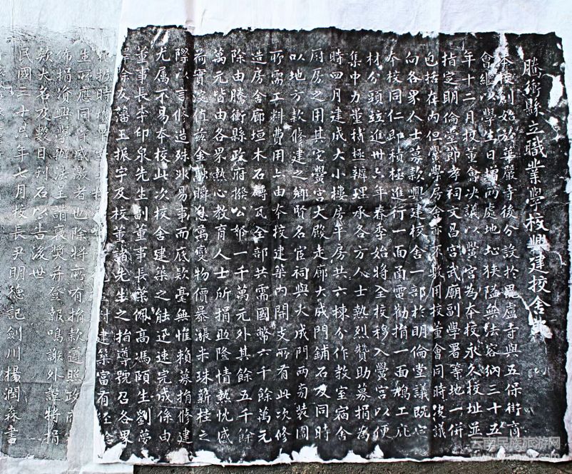 騰沖縣立職業(yè)學(xué)校興建校舍記拓片。尹明德記、張?chǎng)谓贪?nbsp; (賈志偉提供)